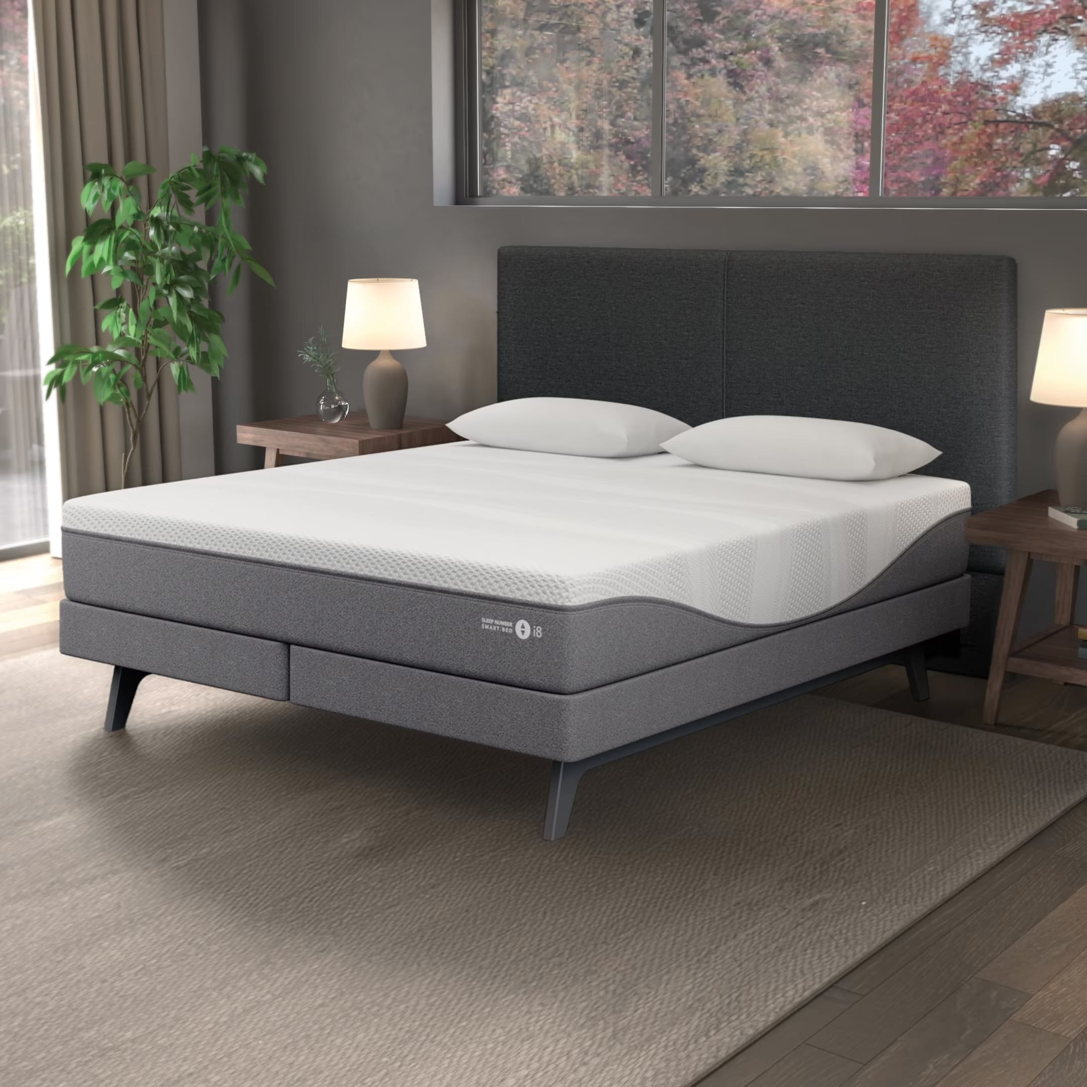The Sleep Number i8 utilizes dual air chambers with responsive air technology and features three inches of comfort foam.
